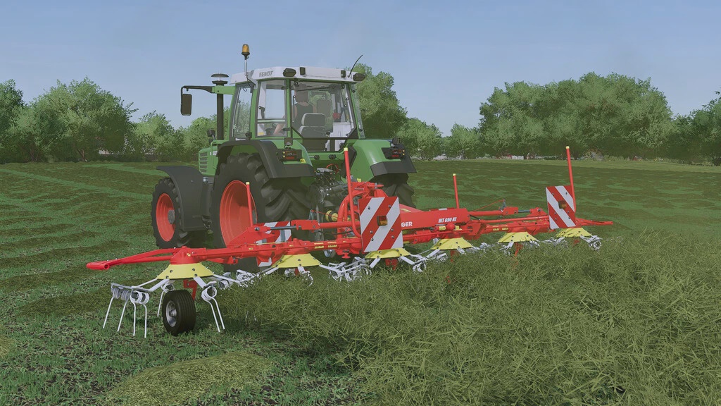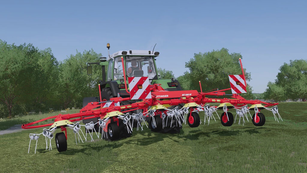 The Pöttinger HIT 690 N or HIT 690 NZ is a tedder with a working width of 6.85 m that is well suited for medium-sized farms.