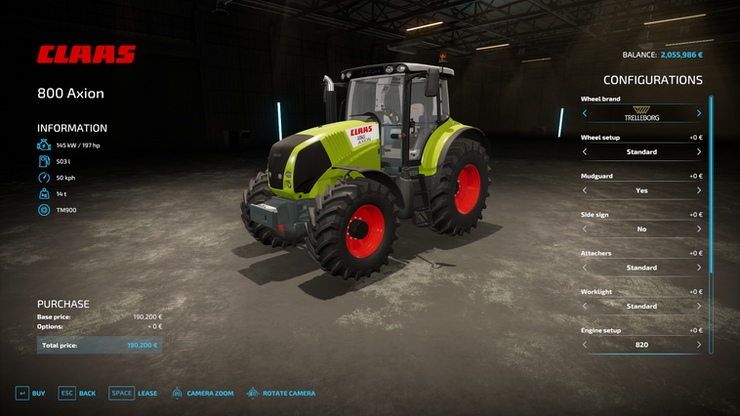 Mod CLAAS Axion 800 v1.0.0.0 for Farming Simulator 2022 -Wheel brand options -Wheel options -Changable body color -Changeable rim color - Changeable mesh color -SimpleIC ready Characteristic: Max speed: 50 km/h Price: 250.000 € Power: 189 - 233 HP