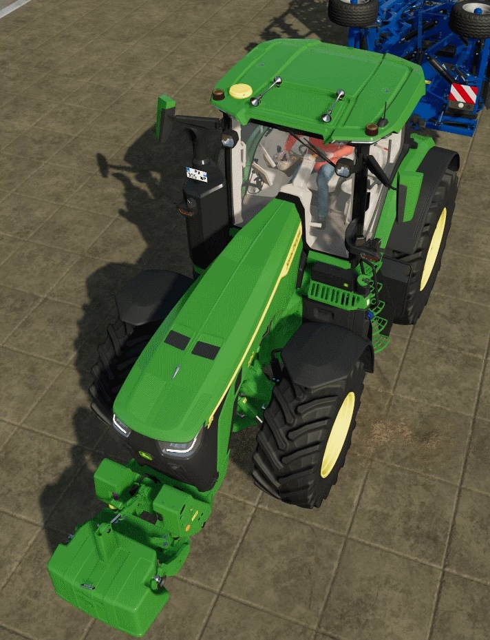 Mod JD 8R series 2020 v1.0.0.0 for Farming Simulator 2022 Power 326 HP Speed 50 km / h - Added sound signal - change of sound signal - replacement of flashing beacons with two LED flashing beacons