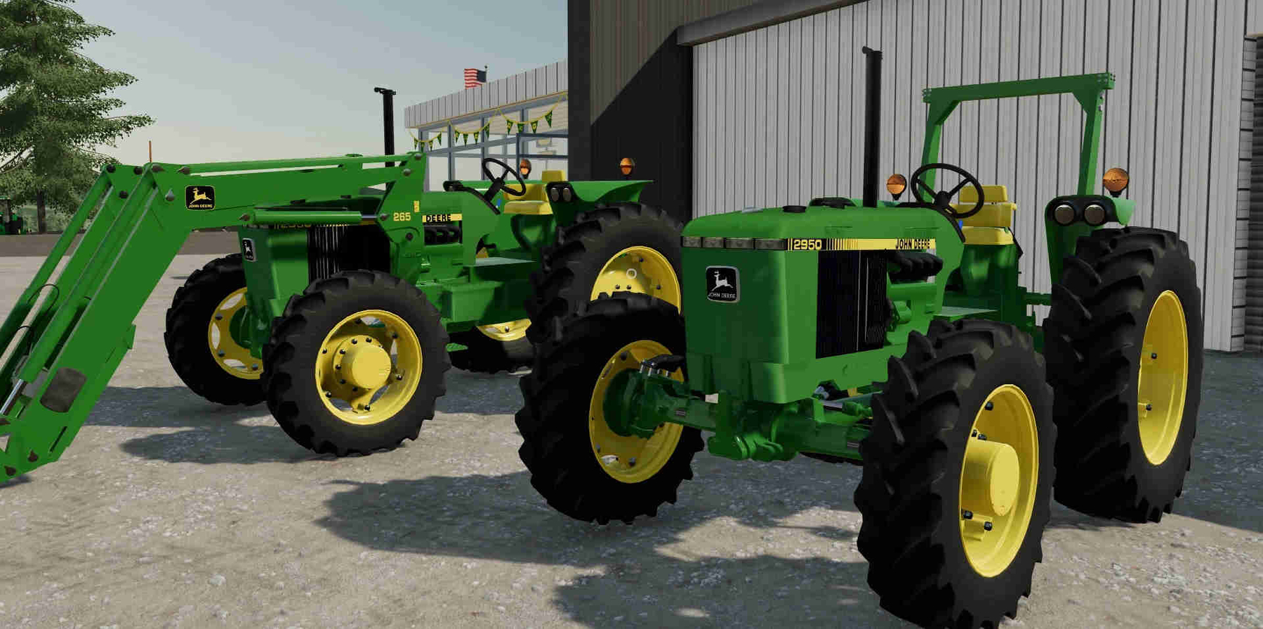 A pretty simplistic conversion of the John Deere 2950, now with a more US spec rear axle and attachers. Options for open station or ROPS, and several loader attacher configs. Comes with a John Deere 265 loader as well. power 85 hp Credits: JMF Modding |