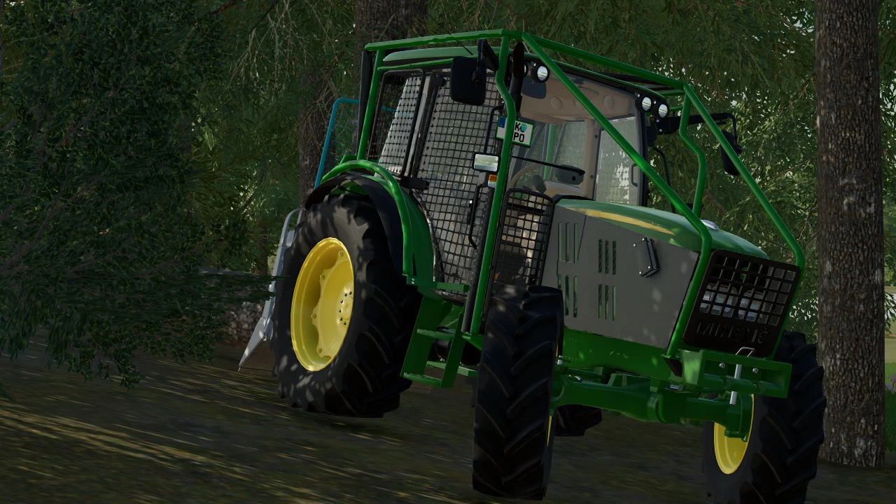 John Deere 5R Forestry tractor with a forest cage configuration. Credits: Berg Agrar Modding, WOLFex Modding |