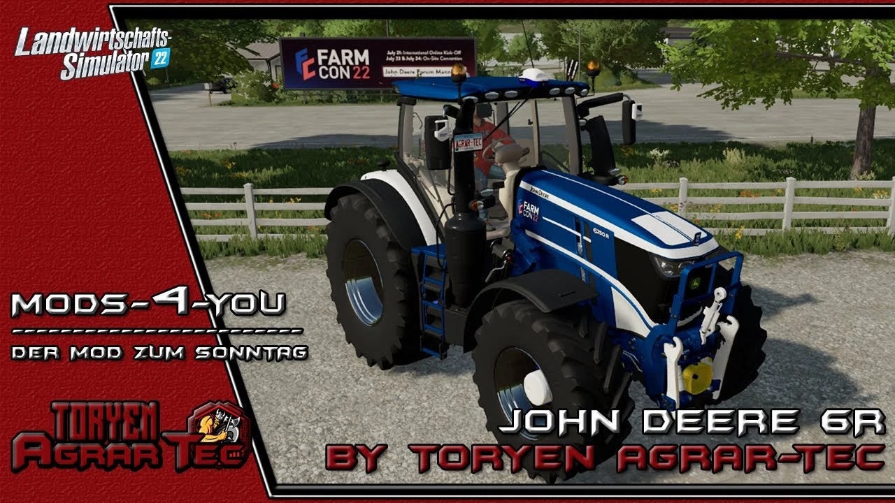 Mod John Deere 6R Farmcon Edition v1.0.0.0 for Farming Simulator 2022 Price 233500, power 280 hp, max speed 50 km/h, choice of wheels. Credits: [ATM] Toryen |