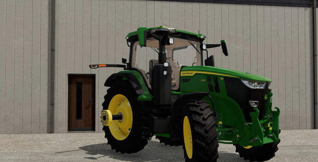 Mod JOHN DEERE 7R US SPEC (2020+) v1.0.2.0 for Farming Simulator 2022 Base 7R model with single tire option and e23 Powershift transmission options.