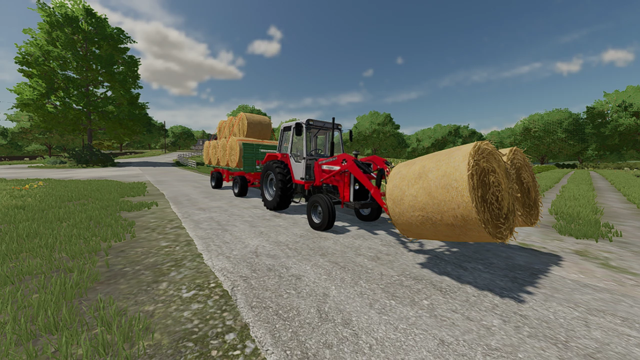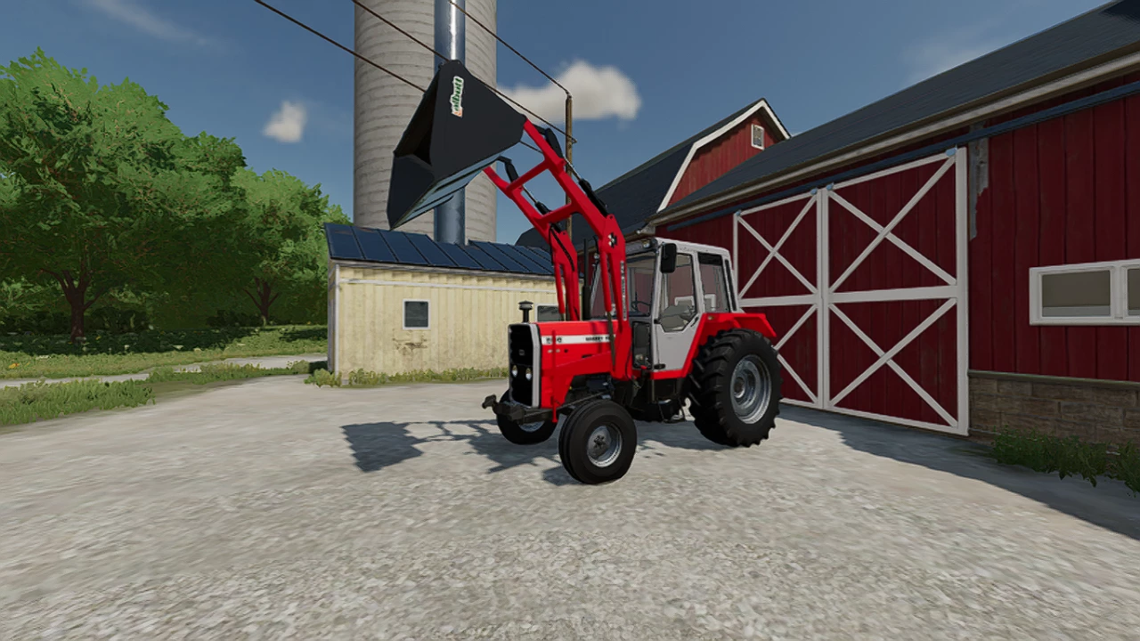 The Massey Ferguson 600 Series tractors by Blauea. The only difference is that the MF 875 front loader brackets from PeterJ have been added, and obviously, the MF 875 loader can be fitted. No special US configs or anything, though. the loader can only be fitted onto the 2WD version. Credits: ItsC0WB0YGamez |
