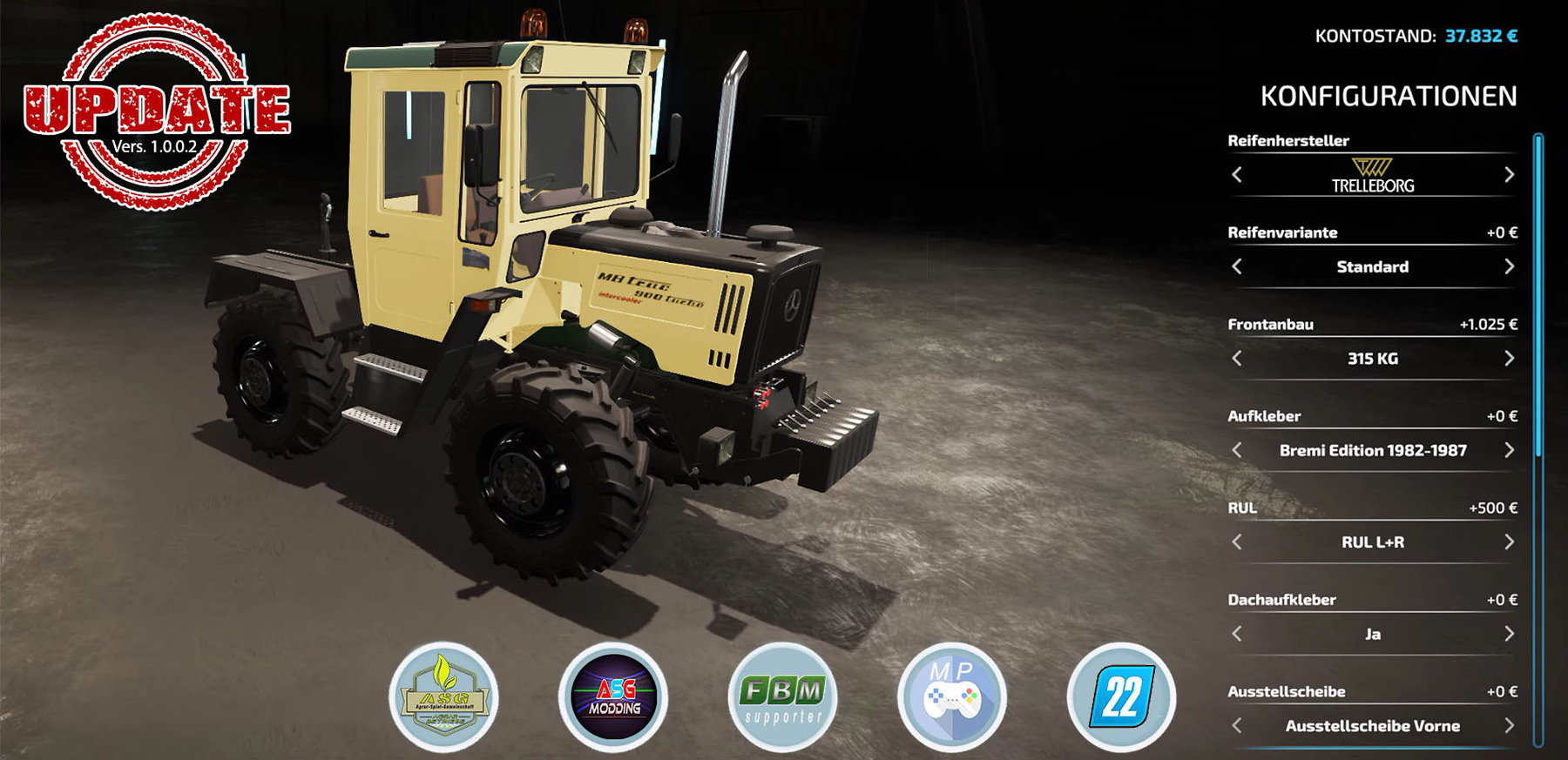 - Automatic upshift, original MB rims tuned, all-round lights added (optional configuration) Credits: Deutz ASG Modding |