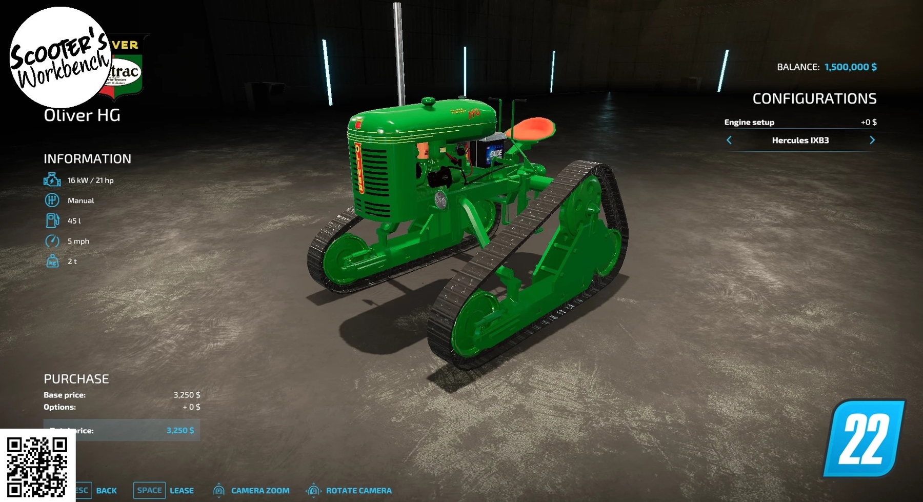 Mod Oliver Cletrac HG v1.0.0.0 for Farming Simulator 2022 Price 3250, power 21 hp, max speed 8 km/h. Credits: Scooter's Workbench |