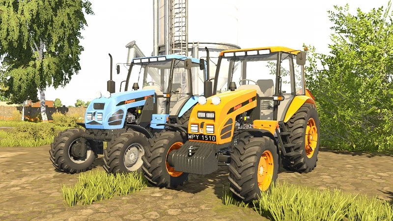 Redesign of the Pronar 82 tractor. Added: - Lots of new colors; - The ability to paint discs; - Launch on the control panel; - Front and rear rails; - Fuel level indicator; - Several new configurations.