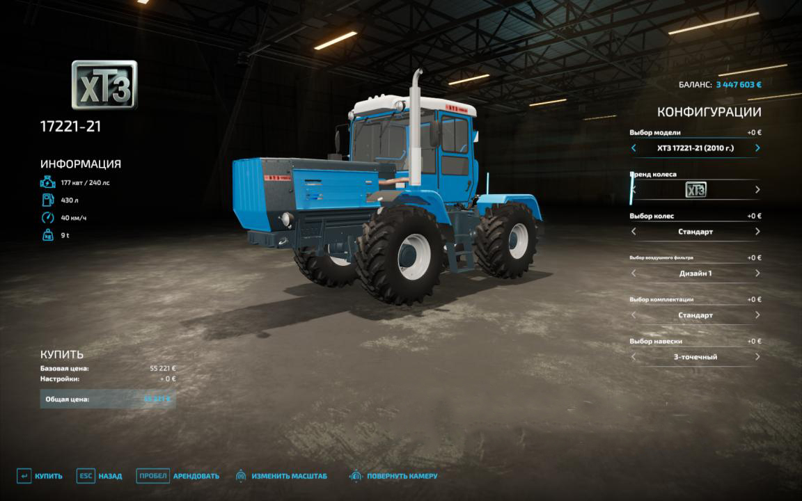 Mod XTZ 17221-21 v1.0.0.4 for Farming Simulator 2022 KhTZ 17221-21 2010, KhTZ 17221-21 2015 and KhTZ 242K.21 2018. If 2010 differs from 2015 only in the color of the cabin, then the 242 already has plastic wings and the air intake is moved to the side with a high "snorkel". The mod is equipped with two hinges, one three-point for agricultural units, and the second tow bar. There is a choice of tires: ROSAVA and Michelin, and the possibility of installing a twin. Also, for a change, there is a choice of air intakes: classic low, with a straight "snorkel" and type 242K. Short description: - Plant manufacturer: HTZ; Credits: Serega93 |