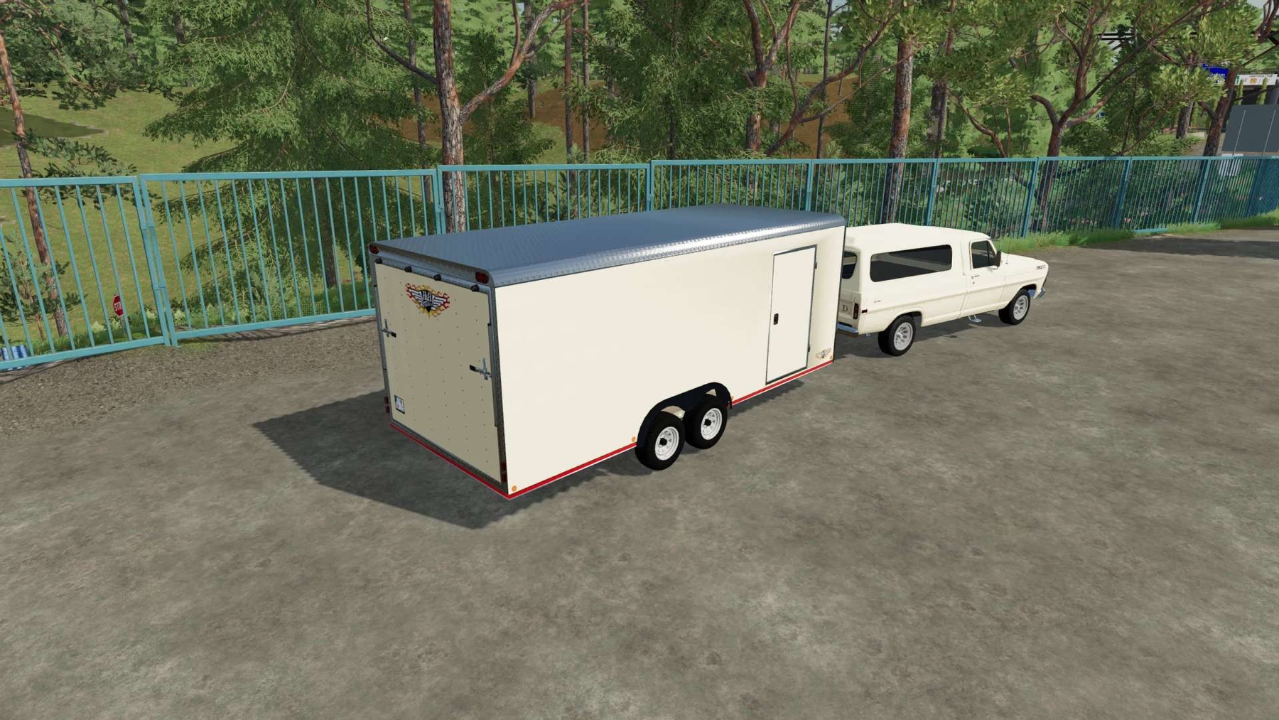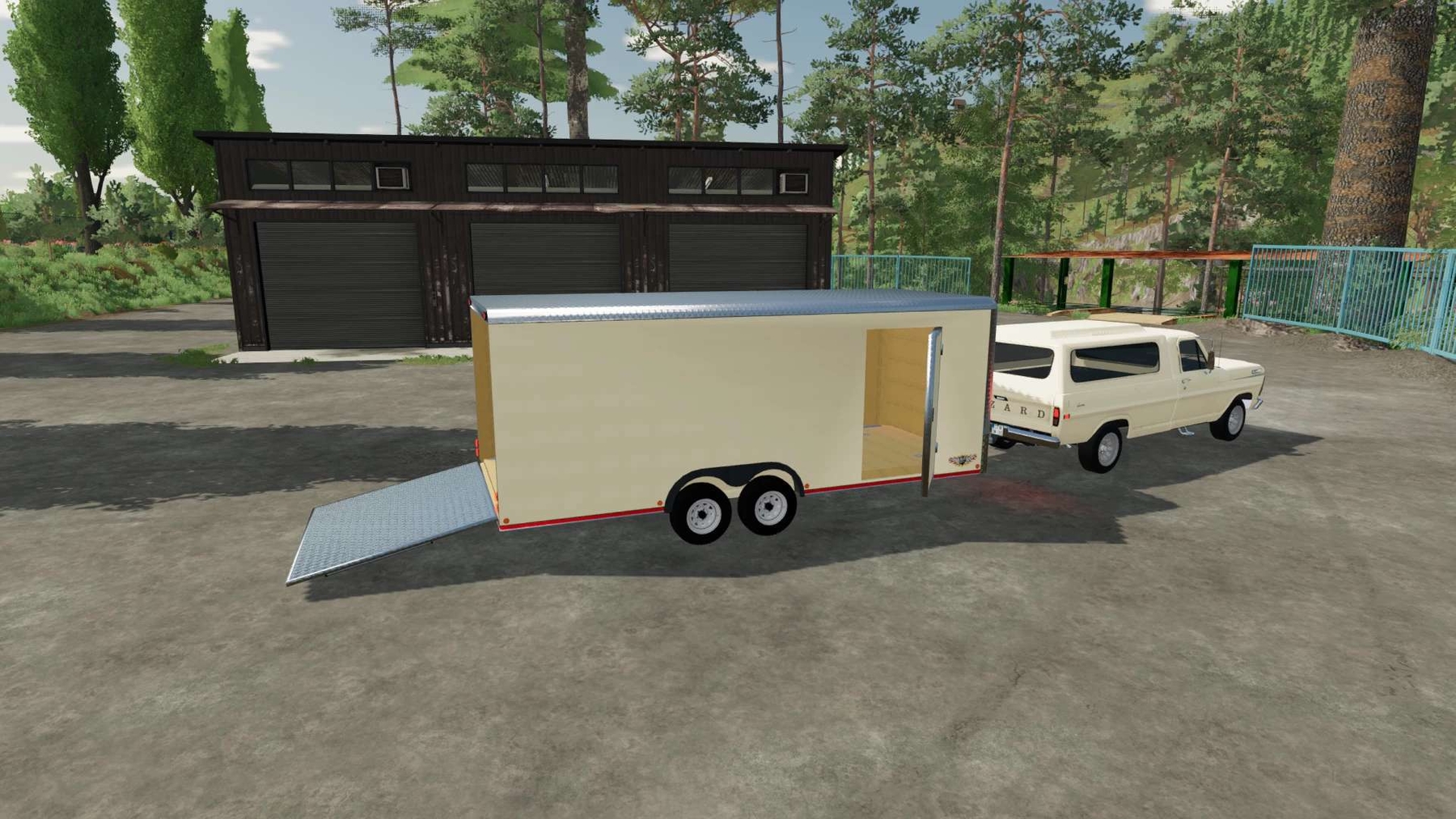 Mod 20ft US Trailer v1.0.0.0 for Farming Simulator 2022 20ft closed trailer work ramp - side door color selection tension belts plate number working electrical connection and support log is clean.