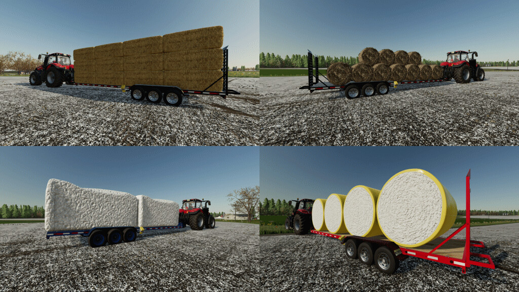 - Flatbed trailer can be configured to automatically load round bales, square bales and pallets (requires mod FS22_aPalletAutoLoader for automatic pallet loading to work).