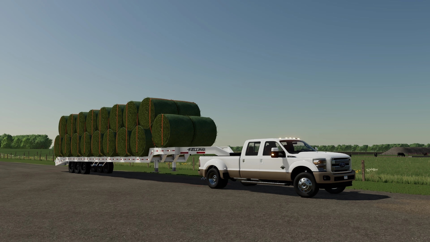Mod 53FT Drop deck with felling neck v1.0.0.0 for Farming Simulator 2022 Semi-trailer with automatic bale loading. Credits: Rockin S Ranch |