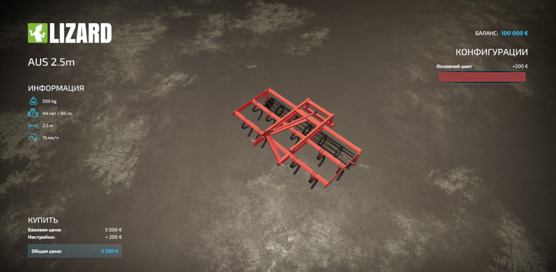 -Price: 5000 € -Color configuration -Width: 2.5m -Needed Power: 60km -You can attach a seeder, etc.