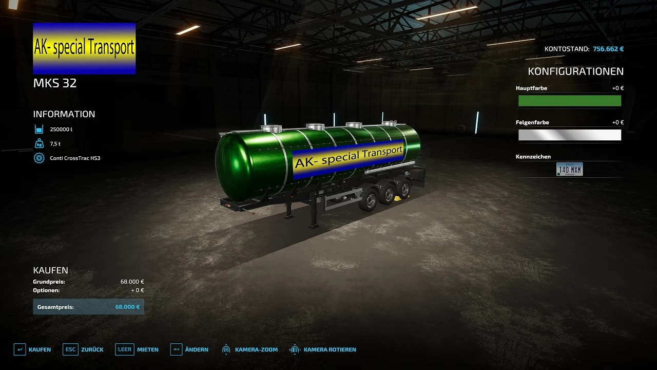 Trailer Weight: -types of filling: flour, sugar, raisins -capacity: 250.000l trailer fluid: -filltypes: HONEY SUNFLOWER_OIL CANOLA_OIL OLIVE_OIL GRAPEJUICE -capacity: 250.000l