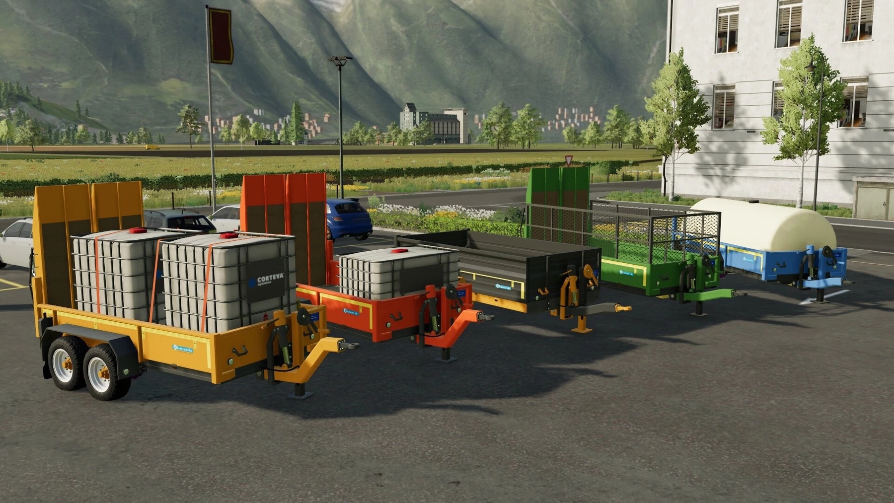 - default (free loading area) - Tarpaulin (free loading area + tarpaulin) - Box (small box on the loading area - volume 1500 l) - Tank (IBC tank at the loading area - sprayer 1500 l, liquid) - Tank2 (large GRP tank - sprayer 5000 l, liquid) - Cage (lattice structure - silo trailer 6500 l) - Dump truck (higher/other side walls - volume 4000 l) Credits: HoFFi/Eicher-Fan |
