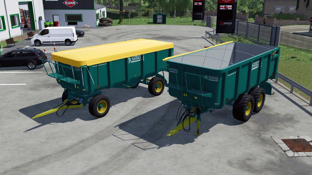 The perfect trailer for your farm, regardless of whether you have a large or small tractor. You can choose between a tandem version or a version with a separate axis. It is convenient both on the road and in the field. Stable unloading thanks to two hydraulic cylinders. If you are looking for a new trailer for Farming Simulator 22, then this is your choice. – Price: 25 500 € - 32 500 €; Configuration options: Credits: caleruega modding design |