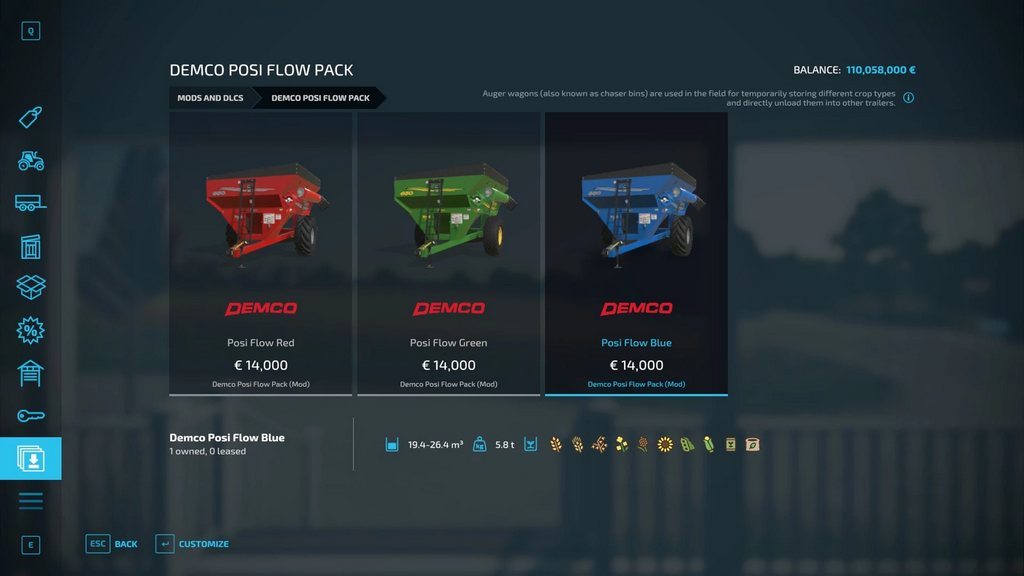 Mod Demco Posi Flow V1.0.0.0 for Farming Simulator 2022 Credits: Whiskey Sierra Modding, Jack |