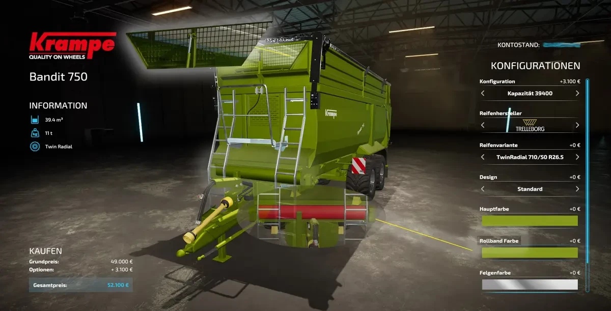 Color choice for body color, rim color, roller belt and chassis in semi-trailer (including original Krampe colors!)
