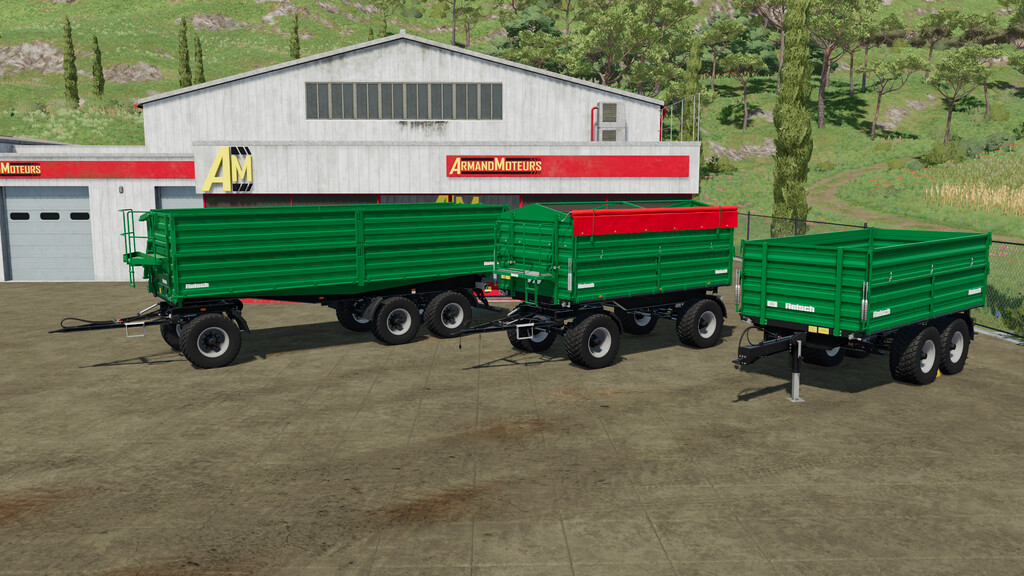 Mod Reisch Pack v1.0.0.0 for Farming Simulator 2022 RT 160 Capacity: 16-23 m³ Configurations: RD 180 The RD180 is a true wonder of space. It is especially suitable for transporting market fruits. Whether from the field to the silo or straight to the mill! Capacity: 19.2 m³ Configurations: -lid RD 240 Similar to the RD180, but with even more space and a hydraulic door to tilt larger loads! Used by large farmers to transport their goods around the map Volume: 26.8 m³ Configurations: Credits: VertexDezign |