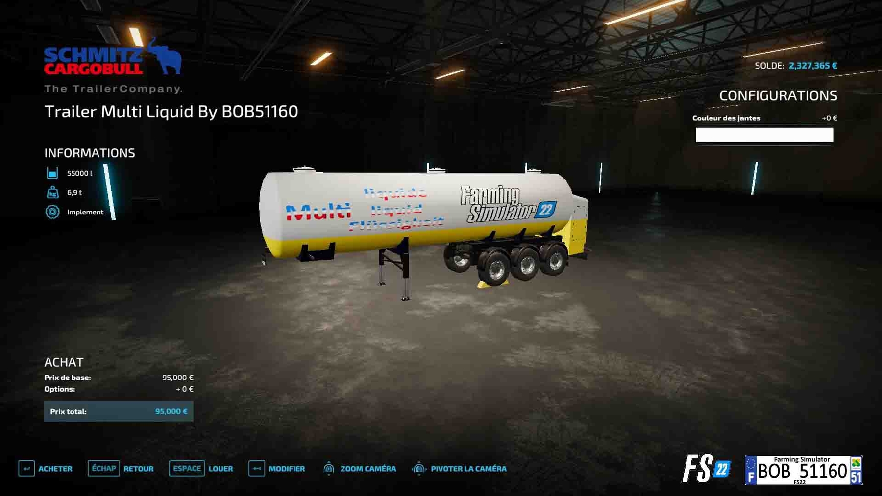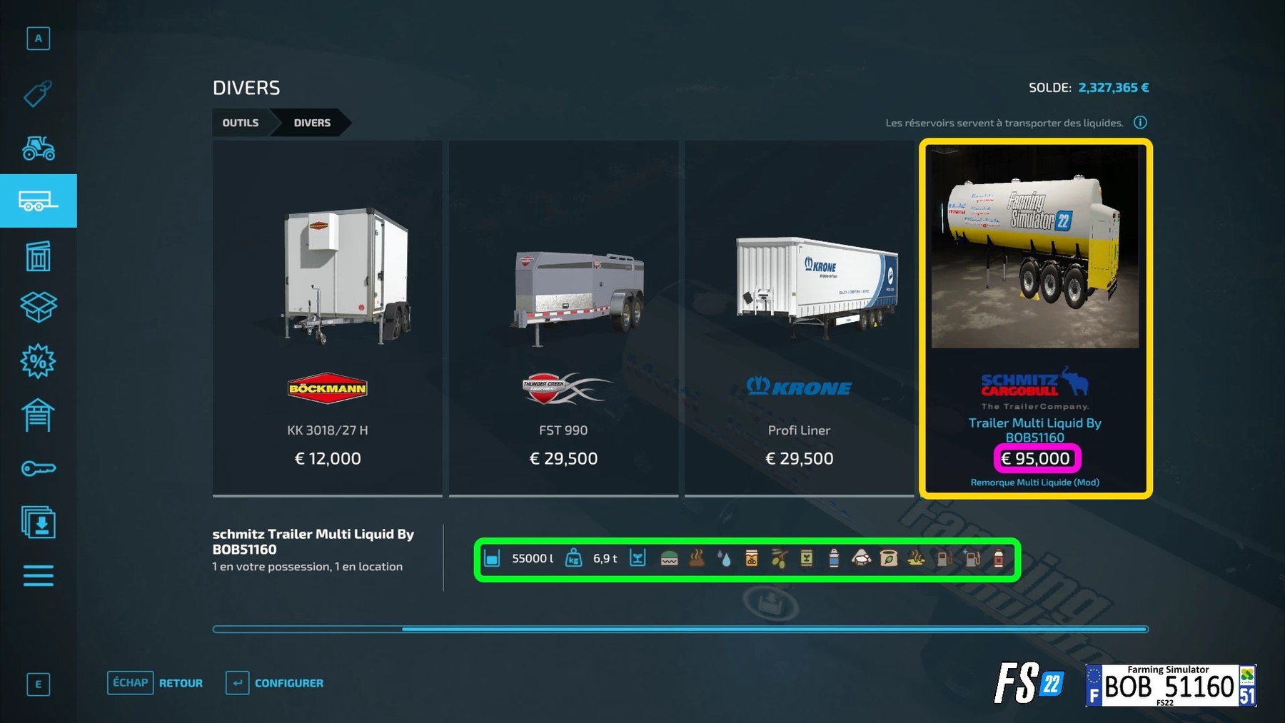 Mod Trailer Multi Liquid By BOB51160 v1.0.0.0 for Farming Simulator 2022 Credits: BOB51160 / MAX51160 |