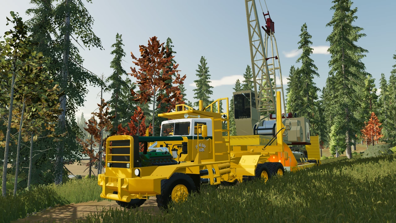 Here is the Hayes HDX off highway logging truck. Truck has options for multiple colour configs, front wheels, lights, and some other options. Trailer loads on the truck while empty and has a loading strap for lifting. Truck and trailer both have tripping bunks for dumping an entire load at once. SimpleIC is required for the trip bunks to work. There is a trigger on either side of the bunk for the stake on the opposite side. I would suggest using a machine to push the logs off and building a small ramp for them to roll down. Enjoy! Thanks to Mayto for the 12v71 sounds. Credits: Elk Falls Logging |