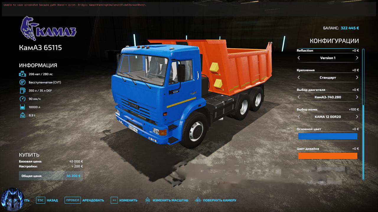 Mod KAMAZ 65115 Dump truck v1.0.0.0 for Farming Simulator 2022 - 2 engines to choose from (280 and 300 hp); Credits: Schumi |