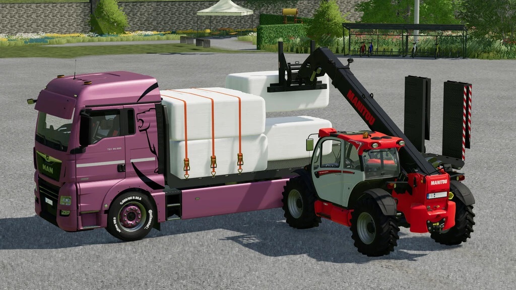 MAN TGX Transporter is used to transport vehicles and cargo such as bales, pallets, etc.