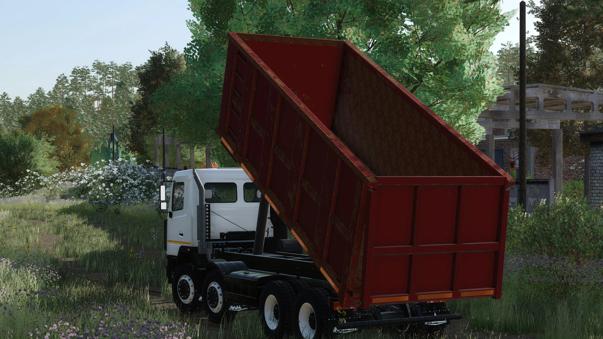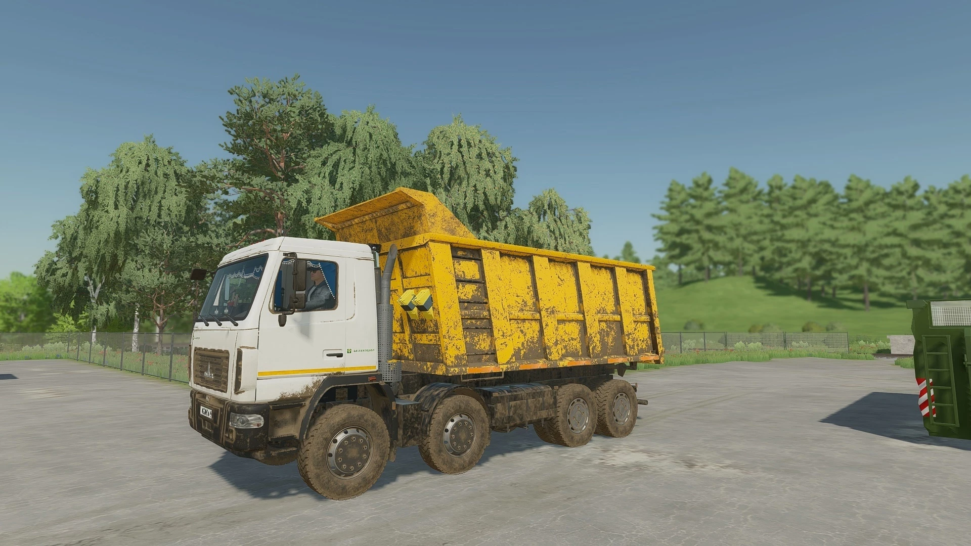 Two MAZ 6516 trucks - dump truck and with hook installation.