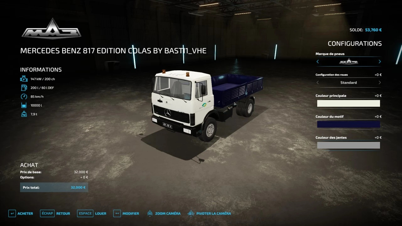 power-180l.s. max speed-85 km/h price-32000 In this mod, you will find the logo of the company in question, as well as the old generation FR plate (black plate). The mod is 100% functional; Beacons/lights/engine work great. A small mistake in choosing a wheel. Authors: SPINTIRES - FS19 SSha - FCC Modding x BASTI1_VHE Credits: - |