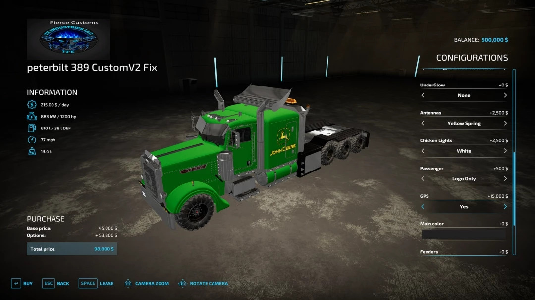 Mod PeterBilt 389 Super v2.0.0.0 for Farming Simulator 2022 Price 45000, choice of rim color, design settings. Credits: Expandables Modding |