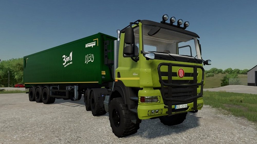 Mod Tatra with trailer v1.0.0.0 for Farming Simulator 2022 - Choice of color rims + body - Design options; - Wheel options. Power: 462 hp Maximum speed: 90 km / h Cost: 121,000 euros Manufacturer: Tatra Category: trucks