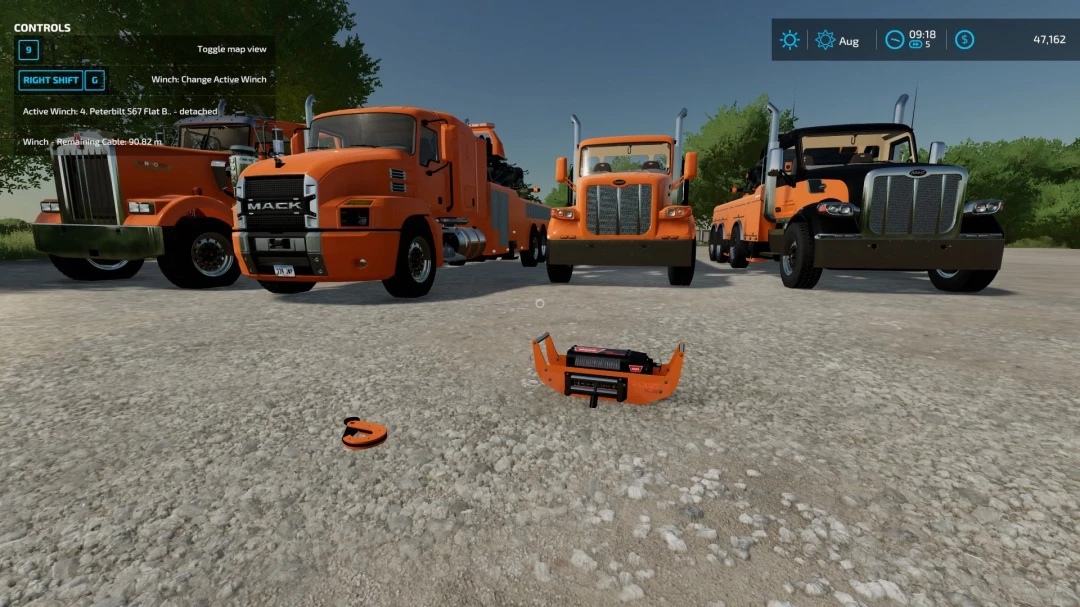 Mod Tow/Winch Pack v1.0.0.0 for Farming Simulator 2022 This is a pack of 4 tow trucks, 1 D.T.U. (removable towing device), 1 safety winch (attaches to trailer hitches, skid steer loaders, wheel loaders, telehandlers), 1 tow hook (attaches to a winch cable so vehicles can be towed) and 1 axle lift (required for towing vehicles with the axle lifted on tow trucks Among the trucks: Peterbilt 567 Flatbed, Peterbilt 567 Jerrdan Rotator, Mack Anthem Rotator and Kenworth W900 Wrecker. Credits: Exley Modding |