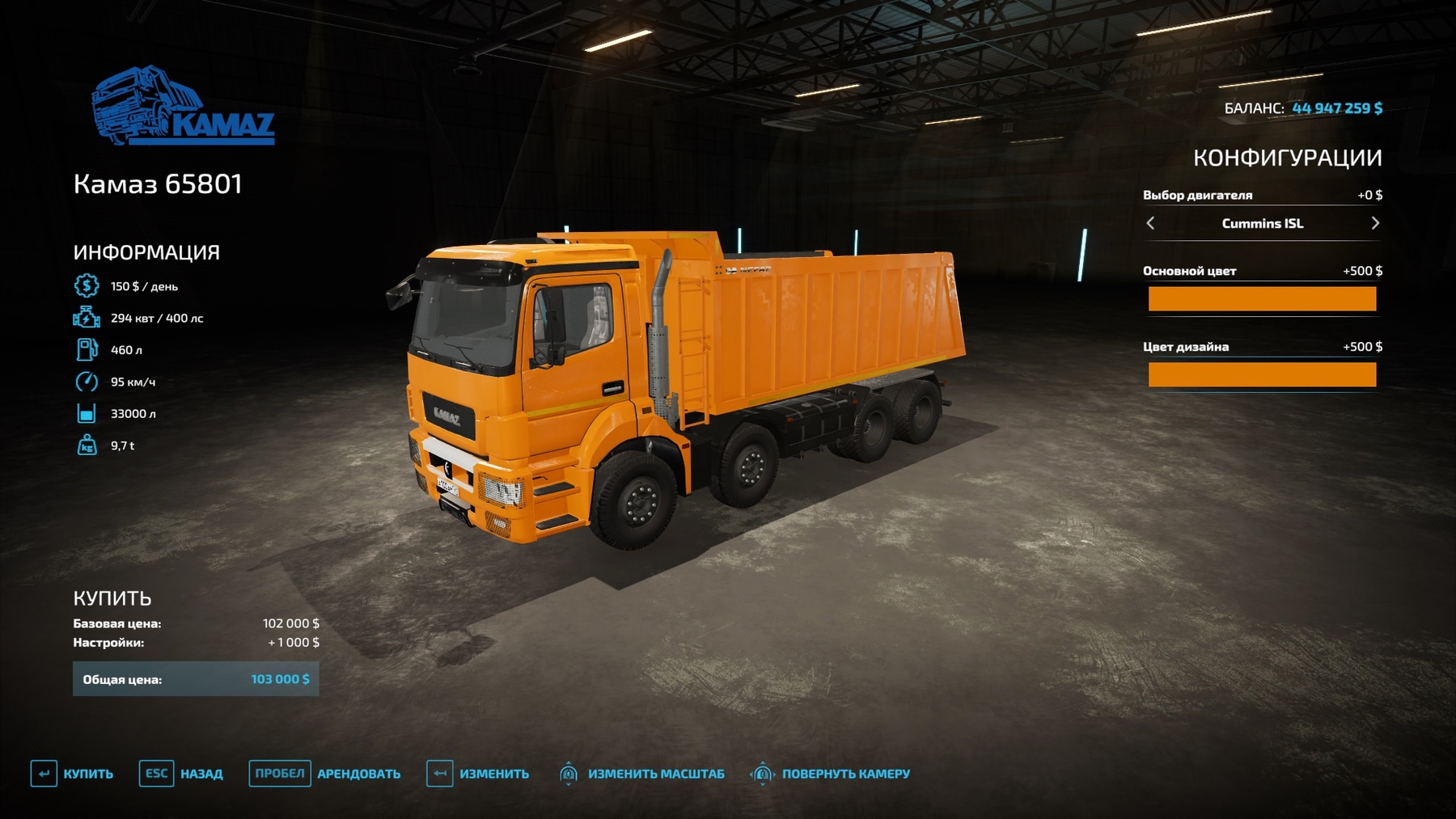 Mod Truck Kamaz 65801 v1.0.0.0 for Farming Simulator 2022 Power 400 hp Speed 95 km/h Fuel tank 460 l. Price 102000 euros lighting technology Dashboard Animation Dust and wheel marks Gets dirty and washes