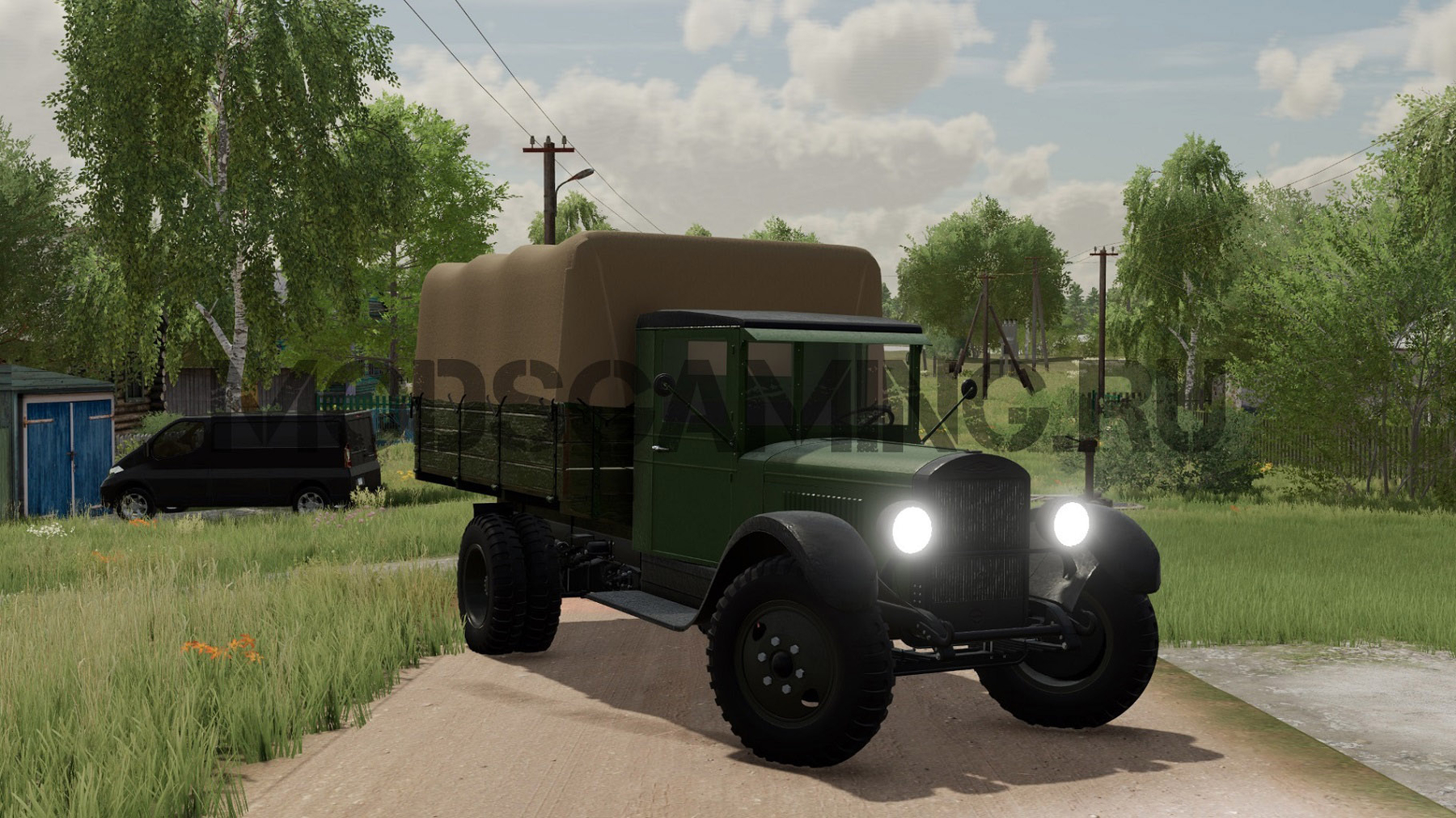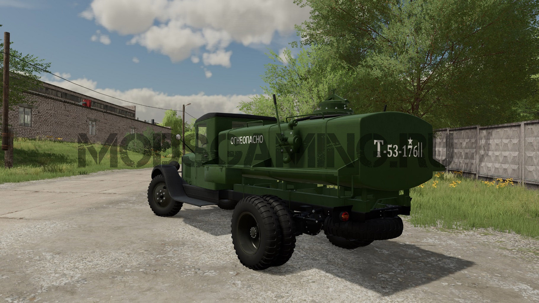 The mod includes: ZIS-5 onboard: - Power: 54 kW / 73 hp; - Speed: 60 km/h; - Volume of a fuel tank: 60 l.; - Cost: 23,000 €; - Configuration of the tent; - Animated dashboard, pedals, gearshift lever; - The board opens; - Fixation straps; - Working lighting equipment; - Working mirrors; - Leaves traces; - Dirty and washable; - The effect of aging; - Volume: 3 000 l. ZIS-5 tank: - Power: 54 kW / 73 hp; - Speed: 60 km/h; - Volume of a fuel tank: 60 l.; - Cost: 28,000 €; - Animated dashboard, pedals, gearshift lever; - Working lighting equipment; - Working mirrors; - Leaves traces; - Dirty and washable; - The effect of aging; - Volume: 2 000 l. Credits: Ser.Rosszz,Gomior |
