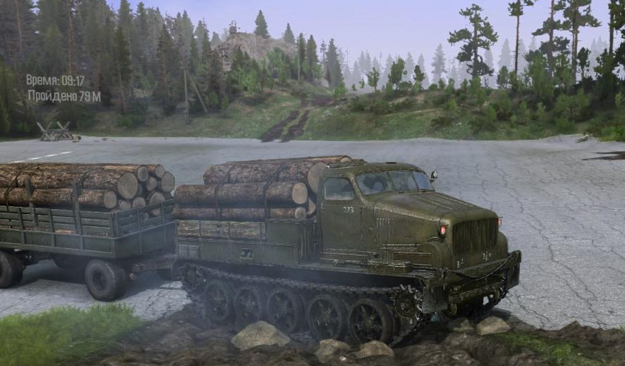 MOD AT-T (PRODUCT 405 MU) FOR SPINTIRES: MUDRUNNER (V07.08.19) Tracklayer BAT-M (product 405mu) with a capacity of 419 hp. heavy, caterpillar can be used on all types of bulldozing operations (including the layout of sites and roads on slopes), backfilling of holes, ditches, trenches, clearing the area from debris, bushes, etc. The tracked chassis of the BAT-M units of the AT-T heavy artillery tractor. About the mod: Envelope of this mod from eskander (link to the original near the author's name). Seeing many on the screenshots of this monster, I decided to add it to my collection too. I will say right away strongly not to kick this is my first envelope of tracked vehicles from Spintires, a lot was not clear, a lot by poking. Therefore, if the registration specialists will help or improve, I will be only glad. From myself changes: The model has 3 add-ons, carries 4 points and hooks on standard trailers.