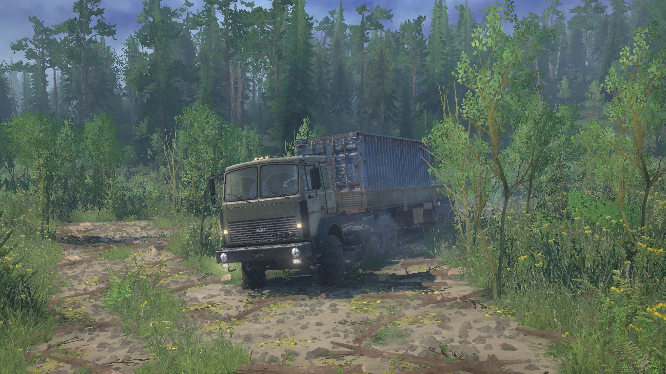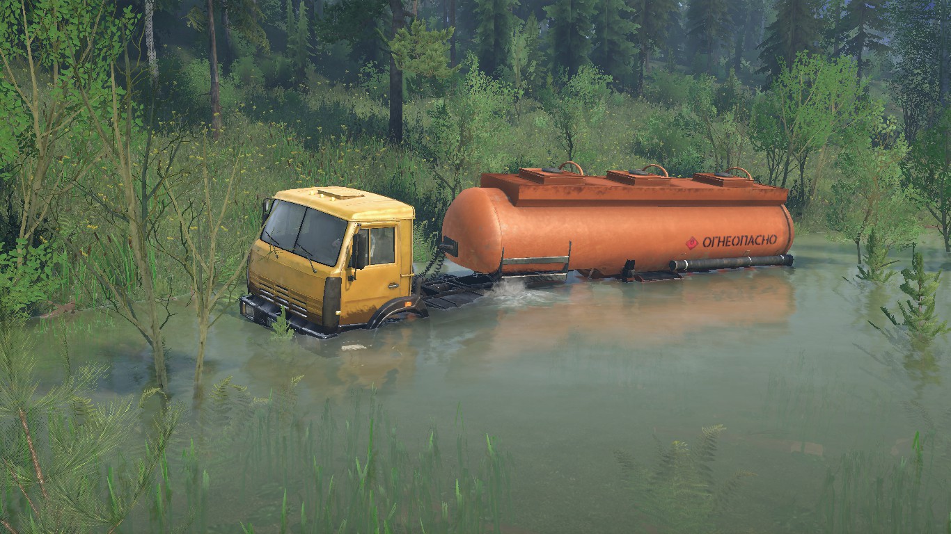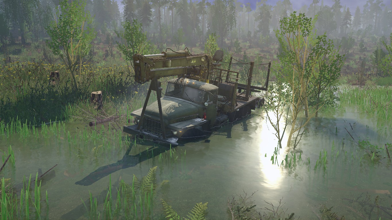 MOD CARD "ABANDONED FORESTRY" FOR SPINTIRES: MUDRUNNER (V14.08.19) There are no roads on the map, the felling was closed long ago and everything is overgrown with dense bushes, you have to resume felling and delivery in this part of the forest, making your way through thickets of bushes and small trees. There is no gas station either, only one fuel tanker at the start and three more are scattered around the map. On the map: