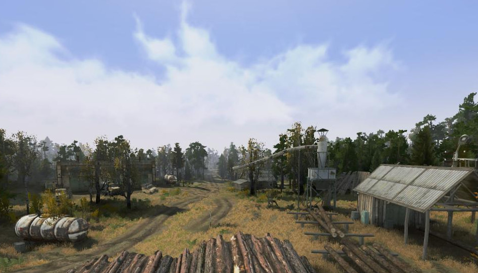 - 1 garage (closed); - 5 sawmills; - 1 gas station; - 1 felling site; - 2 loading points; - 3 starting slots; - 9 points of reconnaissance; - Map size: 960x960 meters. Third-party objects present