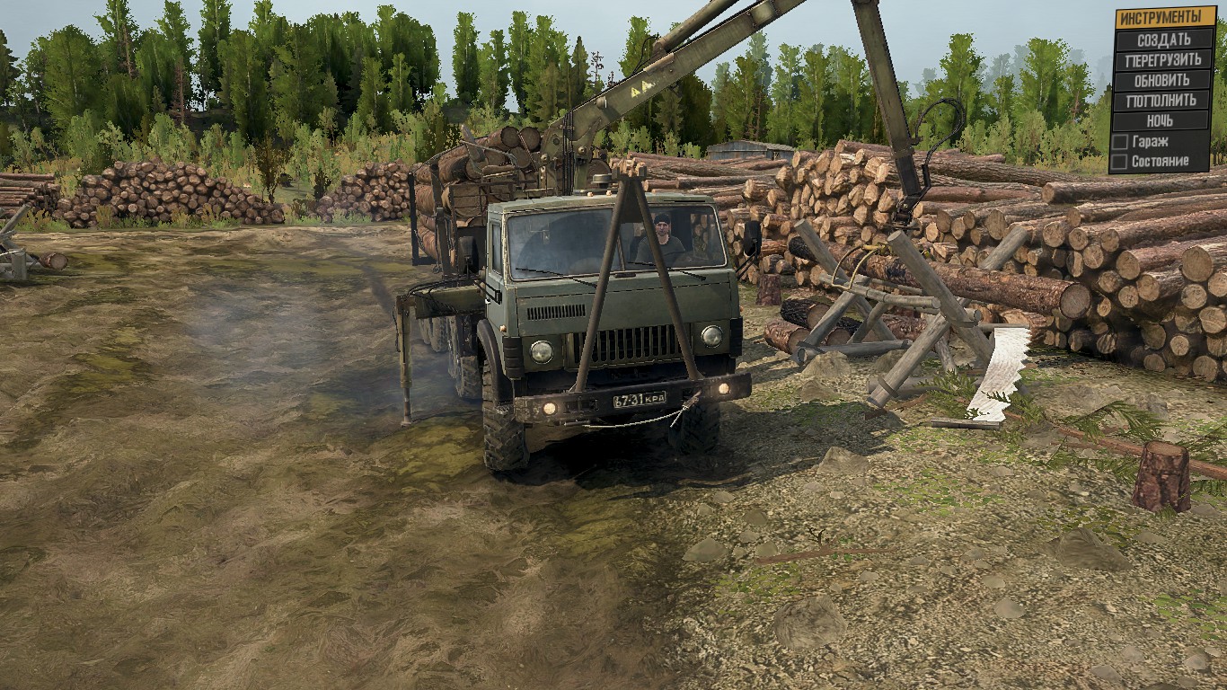On the map: - 1 Garage (closed) - 1 Refueling - 1 Forest felling - 2 points of loading - 6 sawmills - 9 points of exploration - 3 Auto start map size 1x1 km