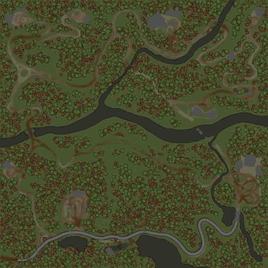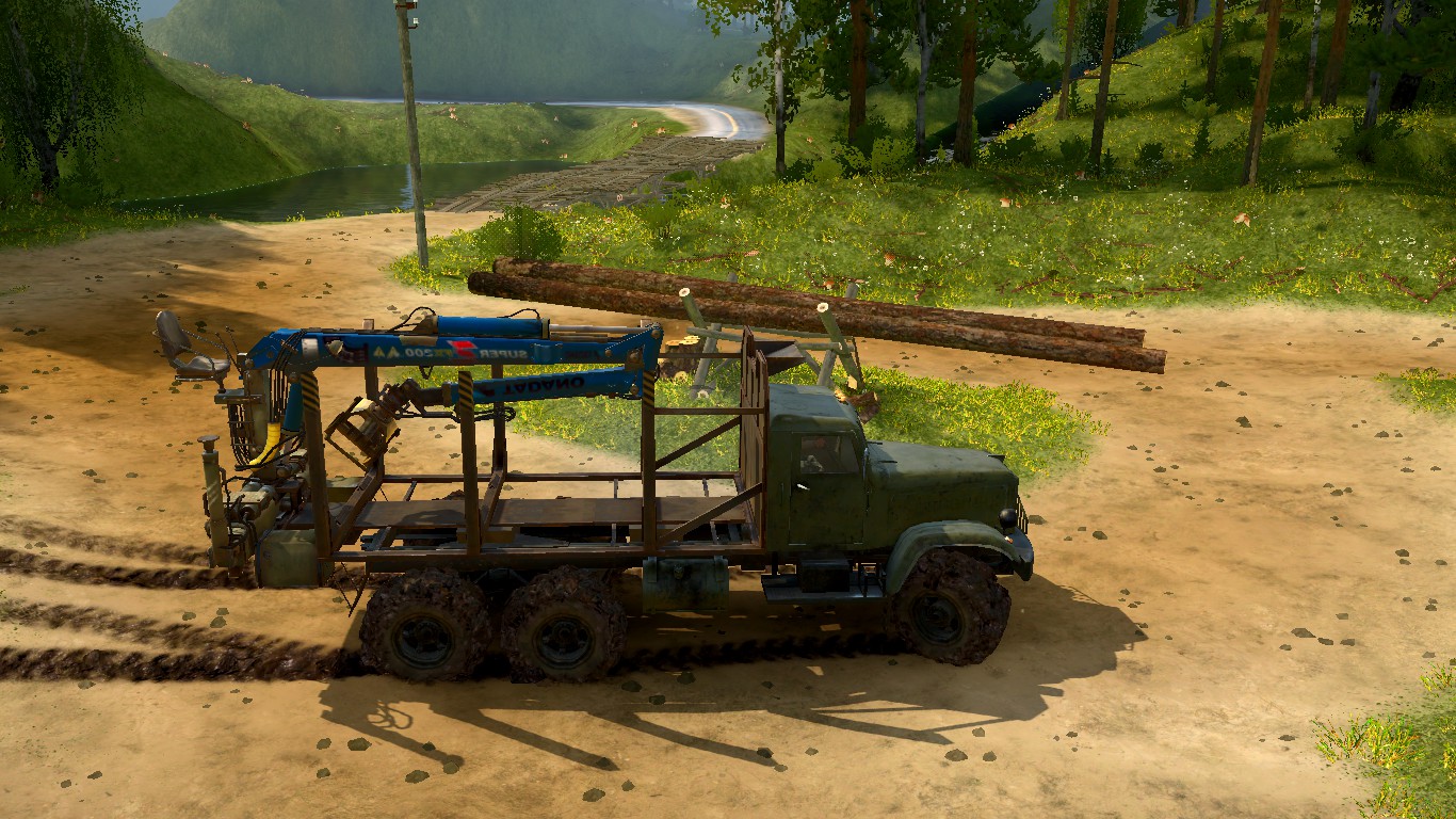 On the map: - 1 garage (closed) - 2 gas stations - 5 sawmills - 0 felling (no) - 3 collection points for wood (long logs) - 4 cars + 2 slots