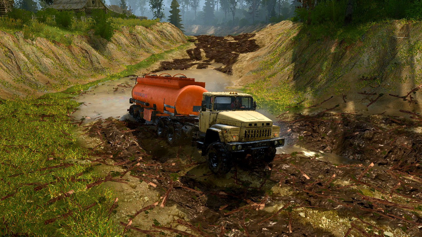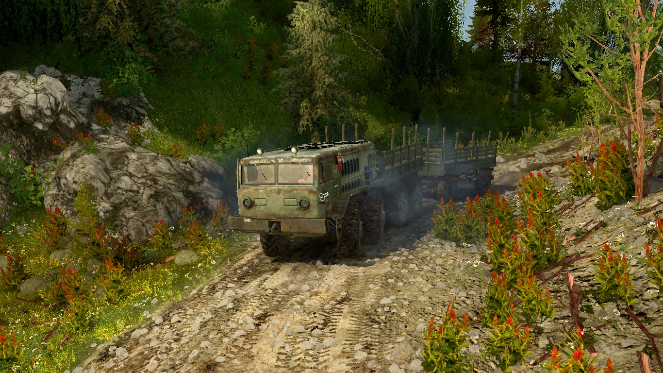 MOD CARD "DIFFICULT ROAD" FOR SPINTIRES: MUDRUNNER (V07.08.19) The map consists of two parts, 2 by 2 km in size. Works only with st_mods. Hello. After the summer torrential rains, some sections of the road are very washed out, so you have a difficult path ahead of you. There is a plot where you can load timber, but transportation of timber from there is a very long process. But there is information that the loaded cars are somewhere on the map. But they are faulty. You have to fix them. Conserve fuel - there is little of it. On the map: - 7 sawmills;