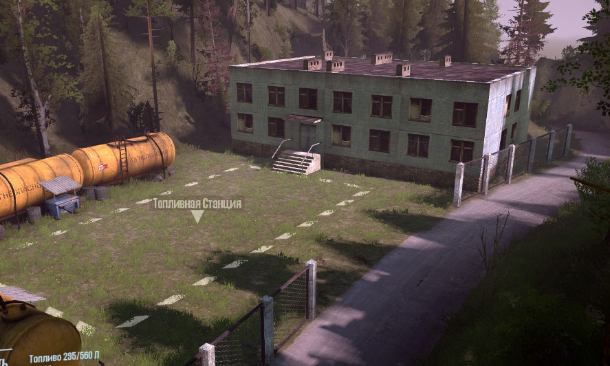 On the map: - 1 garage (closed); - 1 fuel station; - 6 points of reconnaissance; - 2 logging sites + 2 loading points + 2 random loading points; - 4 sawmills; - 2 cars + 3 slots for cars (replaceable). Size: 1024 by 1024 meters. Third-party objects present