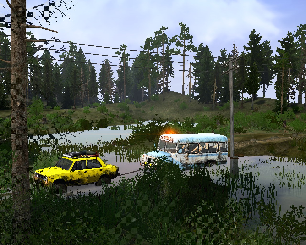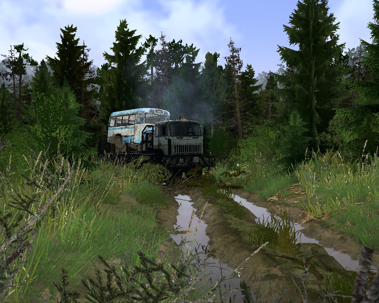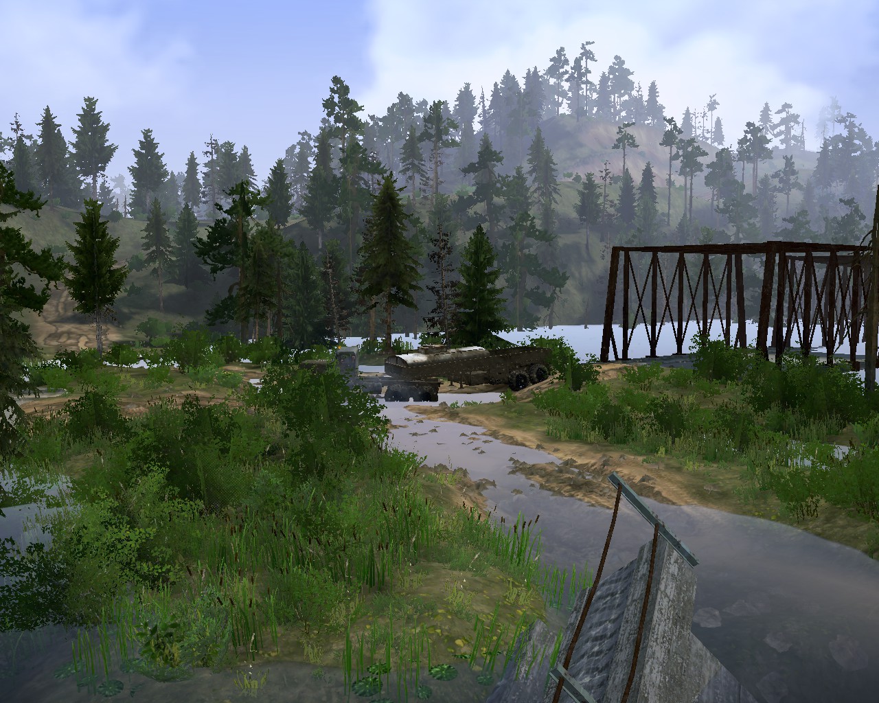 MOD MAP "LOGISTICS 3 - VILLAGE" FOR SPINTIRES: MUDRUNNER (V07.08.19) You contact the second carrier, and he declares that he has everything in order with the firebox, but the motor is turned on, and then stalled tightly. You need to deliver KAVZs to the garage in any way. You can refuel them, repair them and drive them on their own, which will be difficult on the rear wheel drive. Also, on the ground there is an MZKT with a tow truck, or use your floating technique and deliver across a bottomless river. For hardcore in single player mode, there are two KAVZs, and each has two garage points. If you lose at least one in the river, you will have to start over, in multiplayer there will be no such problems. Thank you all for your attention, play with pleasure. On the map: - 1 garage (closed);
