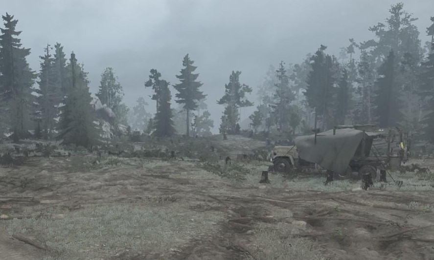 On the map: - 1 garage (open); - 1 fuel station; - 8 points of reconnaissance; - 1 logging site + 2 loading points; - 4 sawmills; - 2 cars + 2 slots for cars (replaceable).