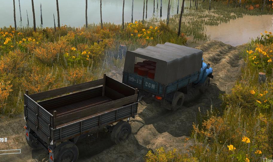 MOD MAP "BOLOTA" FOR SPINTIRES: MUDRUNNER (V25.02.21) A map with a size of 1024x1024 meters. There are two versions in the archive: summer and autumn. On the map: - 1 garage (closed);