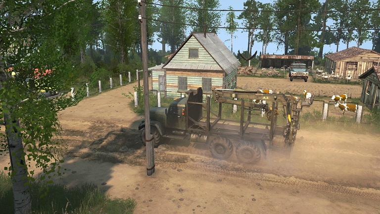 Plot: Explore the map, open the garage, equip the equipment, the logs must be brought to the poultry farm, there is decoration of the premises, so they ordered the logs.