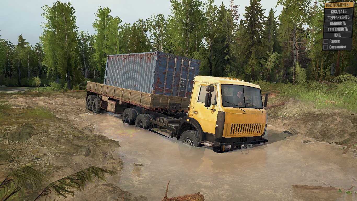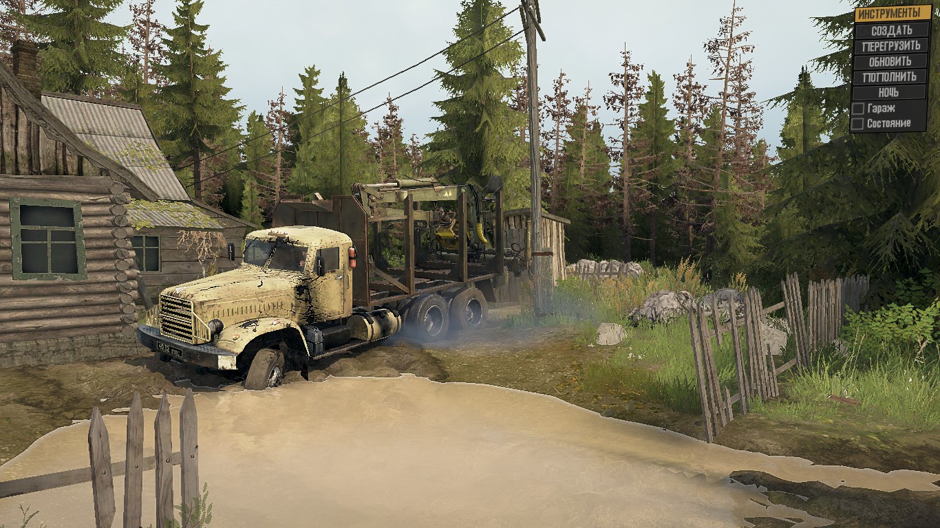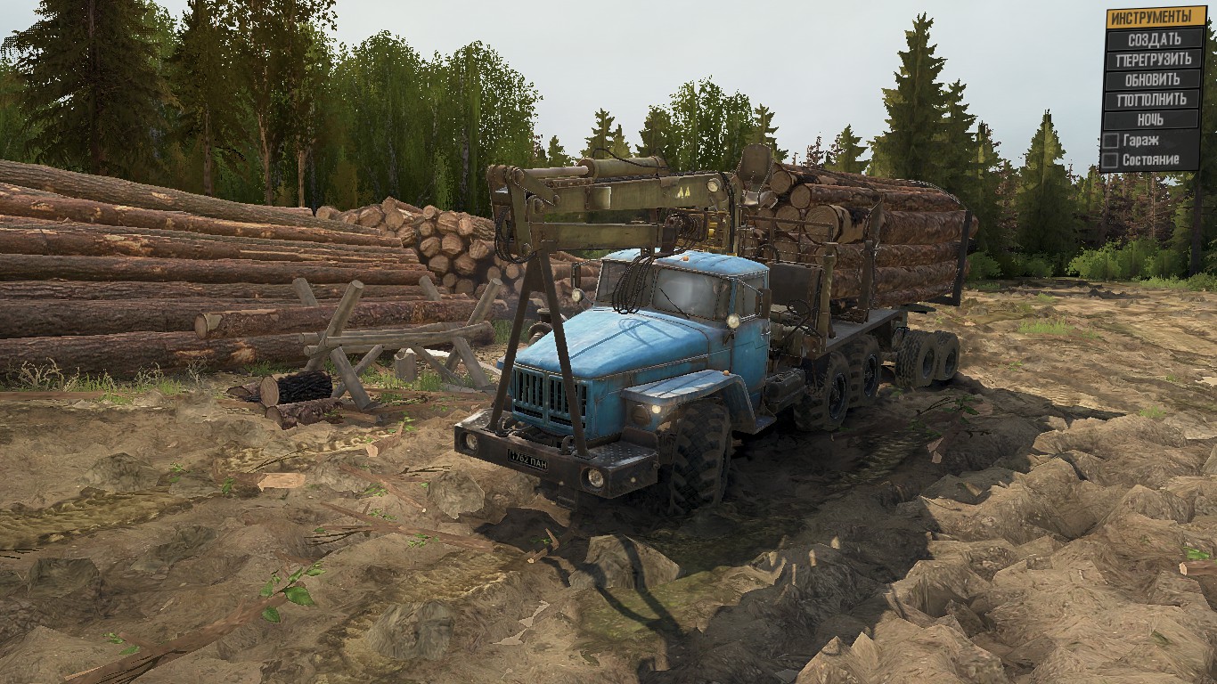 On the map: - 1 Garage (closed); - 1 Refueling; - 1 felling; - 1 loading point; - 9 Sawmills; - 10 Intelligence Points; - 3 cars at the start. Map size: 1x1km.