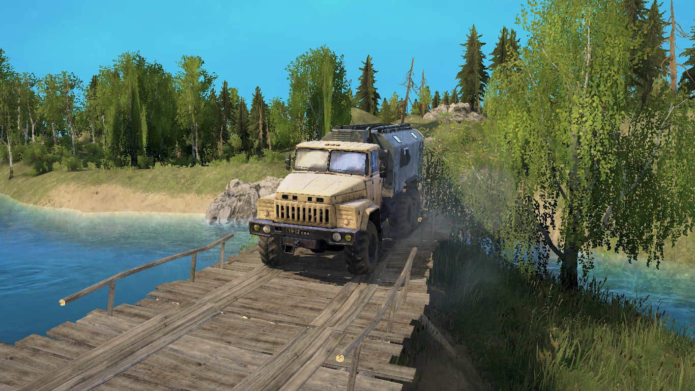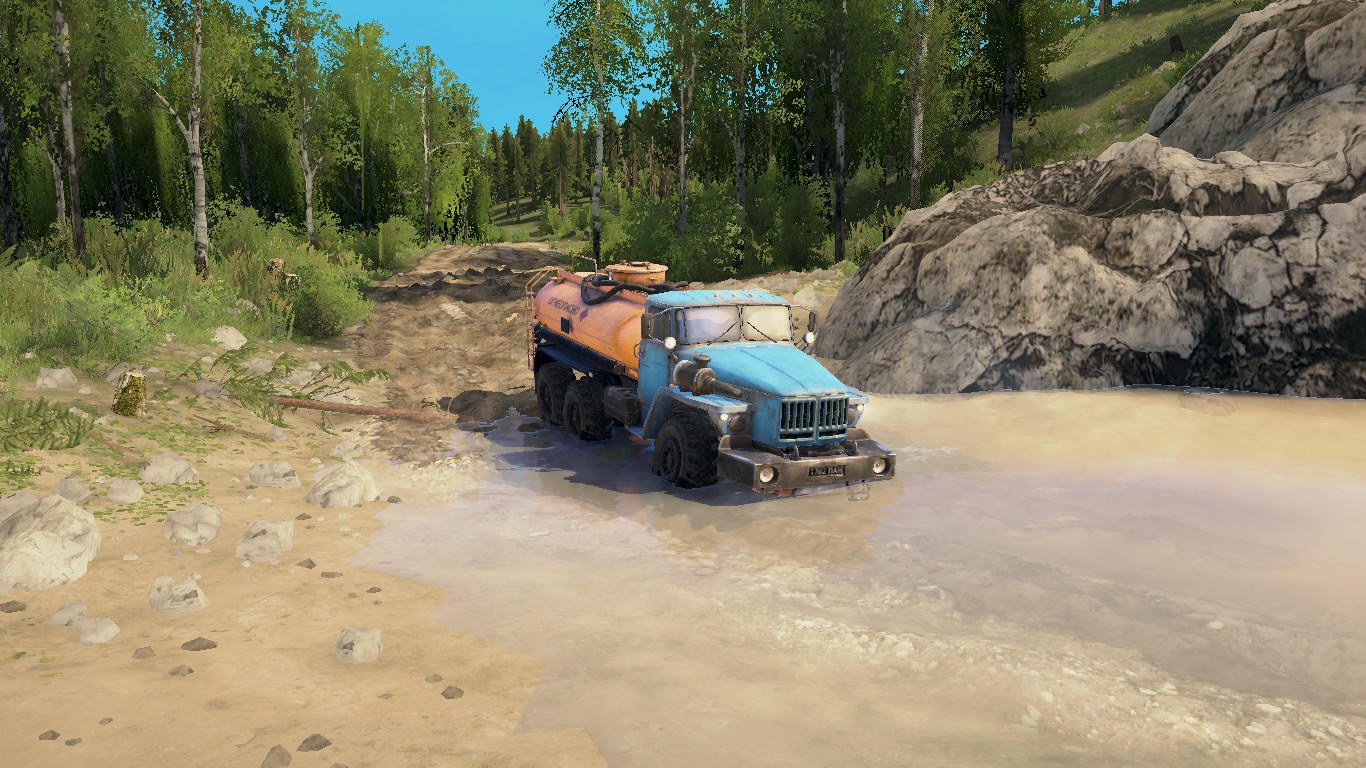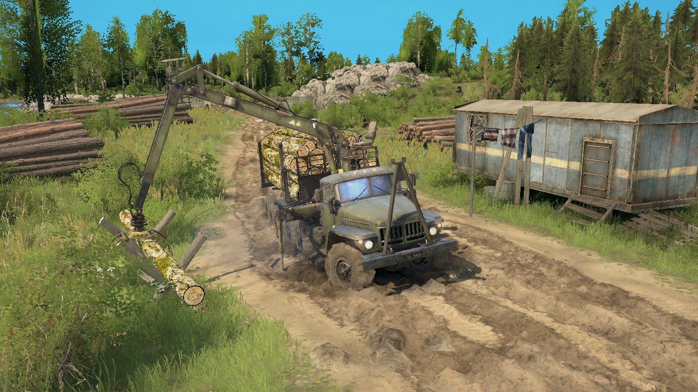 on the map: 2 garages (closed) 1 refueling 1 felling 2 loading points 5 sawmills 10 points of intelligence 4 cars on start, replaceable size: 1024 by 1024 meters.