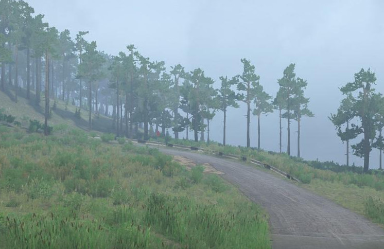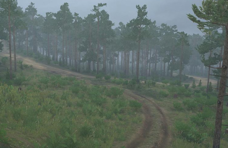 On the map: - 1 garage (closed); - 3 points of intelligence; - 1 loading point; - 1 felling site; - 3 sawmills; - 1 car at the start. Suitable for non-four-wheel drive vehicles