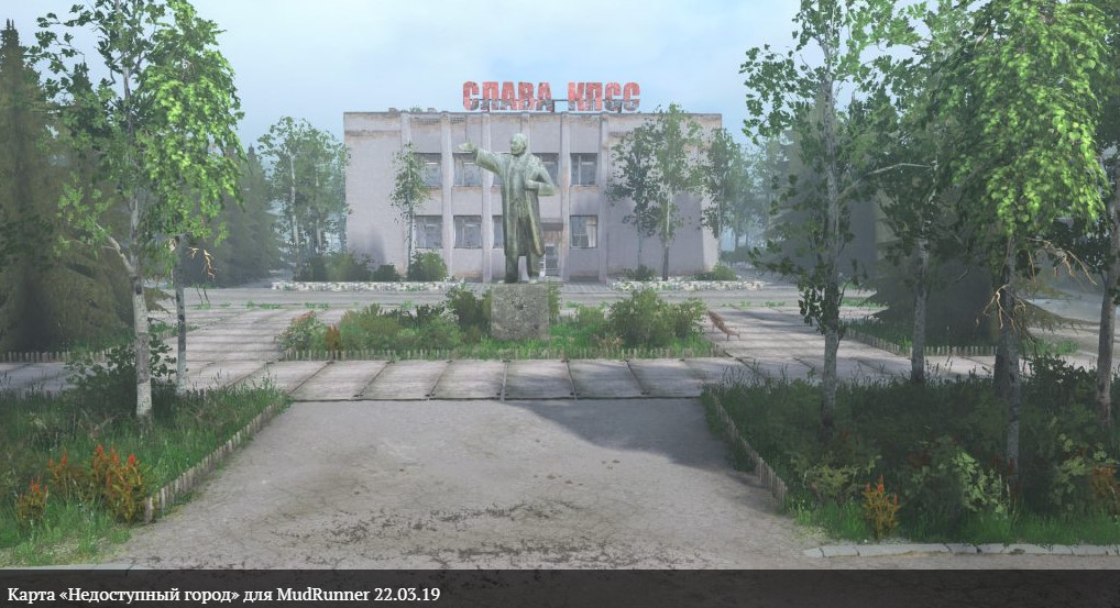 Mod MAP "NOT AVAILABLE CITY" for Spintires: MudRunner (V22.03.19) SUITABLE FOR MONO DRIVE (you can only take 4x4 for intelligence) ___! READ BEFORE THE GAME! ___ The boat does not work with Spmod (SpintiresMod)! BOAT SHIPPING 4 long, 9 medium or 8 short - the logs of the load should be placed SBAR FROM the boat, you can not even remove from the truck - park the boat along the coast. BOAT UNLOADED by the nose - logs are thrown off BEFORE the boat (make sure the trailer is level!) BRIDGE is built from MEDIUM logs - “start” it and pack the logs - a bridge will appear. You have to bring logs around the neighborhood, as usual XD. But not everything is so simple and ordinary: you can reach the felling only by water, so you will have to take out logs with a boat, catching rafts. And the equipment available to you is only non-four-wheel drive, so it will be very difficult to cut around the roads. In addition, someone from the local made a joke and hid the garage parts to the most prominent place - you have to sweat to get and open the garage. The card is in two versions: autumn (multiplayer, 6 sawmills), and summer (single, 3 sawmills). Total on the map: In addition, on the map you can find four beavers, a mushroom glade and other Easter eggs.
