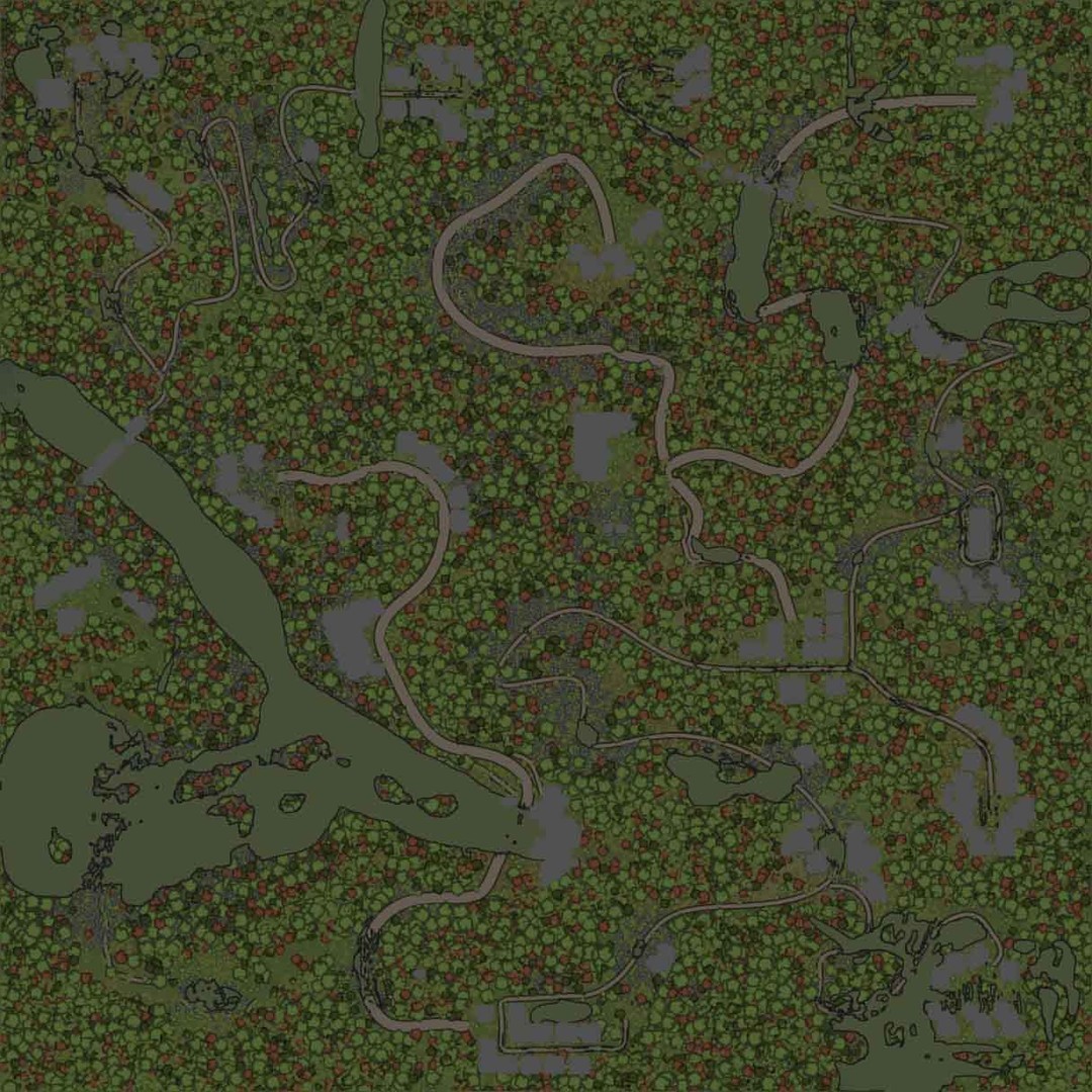 On the map: - 2 garages (closed) - 6 gas stations - 24 power - saw benches - 1 logging station + 1 loading point - 5 intelligence points - 6 cars at the start
