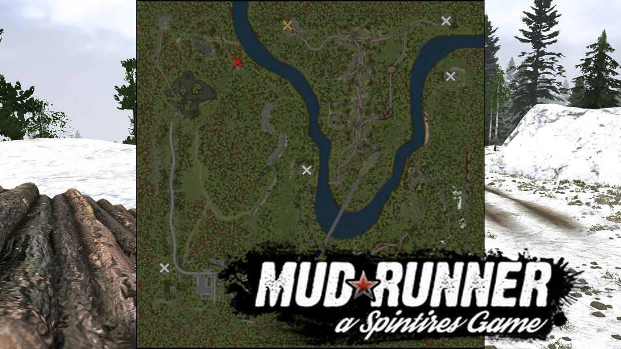 MOD Map "WHITE MOUNTAIN 2" FOR SPINTIRES: MUDRUNNER (V25.02.21) I recommend not to change cars at the start (66-with repair parts). - 6 sawmills;